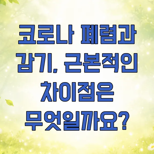 겉보기에는 비슷해 보이는 코로나 폐렴과 일반 감기, 하지만 증상의 양상이나 심각성에서 분명한 차이가 있답니다. 그래서 오늘은 이 둘을 명확하게 구분해서 알아보고, 혹시라도 나에게 해당되는 증상이 있다면 어떻게 대처해야 할지 함께 이야기 나눠볼까 해요.