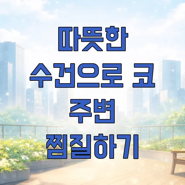 코감기나 알레르기 비염으로 콧물이 계속 나올 때는 따뜻한 찜질 이 정말 효과적이랍니다. 따뜻한 물수건을 준비해서 코 주변과 이마를 부드럽게 찜질해 보세요.
