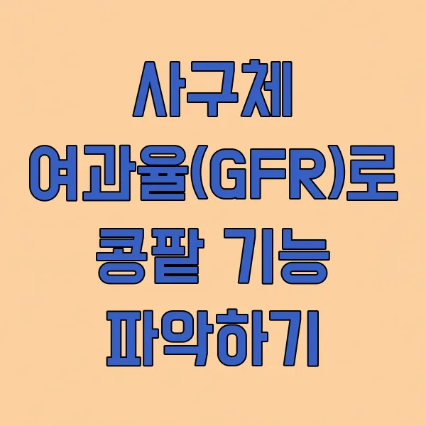 콩팥의 전반적인 기능 상태를 좀 더 정확하게 파악하기 위해 '사구체 여과율'이라는 것을 사용해요. GFR 이라고도 불리는데, 1분에 콩팥이 얼마나 많은 혈액을 걸러낼 수 있는지를 나타내는 수치랍니다. 이 수치가 낮을수록 콩팥 기능이 저하되었다고 볼 수 있어요.