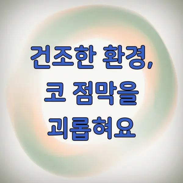 가장 흔한 원인 중 하나는 바로 건조함 이에요. 특히 겨울철이나 난방을 많이 하는 실내에서는 공기가 매우 건조해지기 쉽죠. 이렇게 메마른 공기는 우리 코 안의 점막을 건조하게 만들어요.